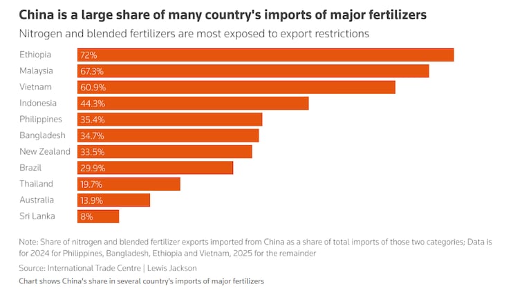 La dépendance critique de l’Afrique aux importations d’engrais est brutalement exposée par les restrictions chinoises et les disruptions industrielles. «Face à une pénurie mondiale, la Chine préfère restreindre ses livraisons plutôt que de venir à la rescousse», souligne Matthew Biggin, analyste senior spécialisé dans les matières premières chez BMI. La Chine, deuxième exportateur mondial avec 8,5 milliards de dollars en 2024, a drastiquement réduit ses ventes depuis mi-mars 2026, interdisant les mélanges azote-potassium et certains phosphates. Une décision qui frappe de plein fouet l’Éthiopie, où 72% des importations d’engrais azotés et mélangés proviennent de Chine.