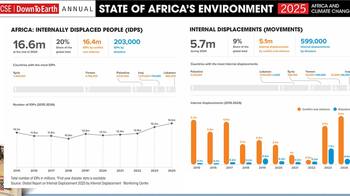 Les déplacements internes dus aux catastrophes ont explosé, passant de 1,1 million en 2009 à 6,3 millions en 2023. Dans certaines régions, notamment en Afrique de l’Est, jusqu’à 10,5 % de la population pourrait être contrainte de se déplacer d’ici 2050, accentuant les tensions sociales, la pauvreté et l’insécurité.