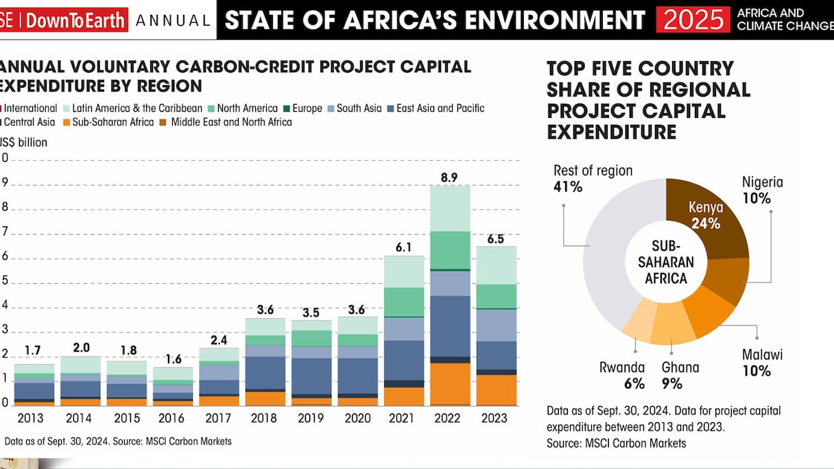 Le document du CSE note que l’Afrique représente environ un cinquième des projets de crédits carbone recensés dans les grands registres mondiaux. Entre 2013 et 2023, environ 14 % des investissements mondiaux en projets carbone- soit 5,9 milliards de dollars- ont été réalisés en Afrique subsaharienne. Toutefois, les bénéfices pour les communautés locales demeurent limités, révélant un déséquilibre profond dans la gouvernance du marché du carbone.
