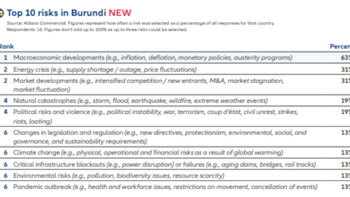 Le Top 10 des risques commerciaux au Burundi en 2025. DR.