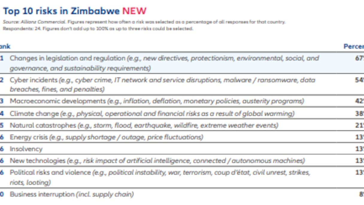Au troisième rang viennent les risques macroéconomiques comme l’inflation (21%). Dans un contexte de tensions géopolitiques mondiales, l’Afrique n’est pas épargnée par les chocs économiques.