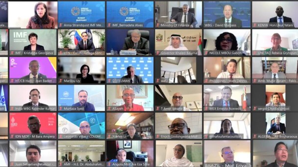 Plusieurs ministres participant à une réunion intergouvernementale online des ministres et gouverneurs du G24.