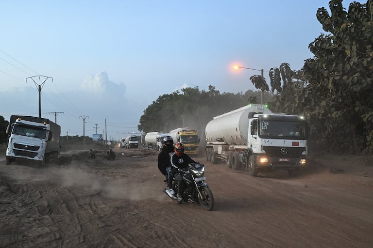 Des camions-citernes maliens à l'entrée de Boundiali, dans le nord de la Côte d'Ivoire, le 30 octobre 2025, en direction de Yamoussoukro et d'Abidjan pour charger du pétrole. Illustration de l'insécurité sahélienne qui représente une menace pour les économies ouest-africaines comme la Côte d'Ivoire.