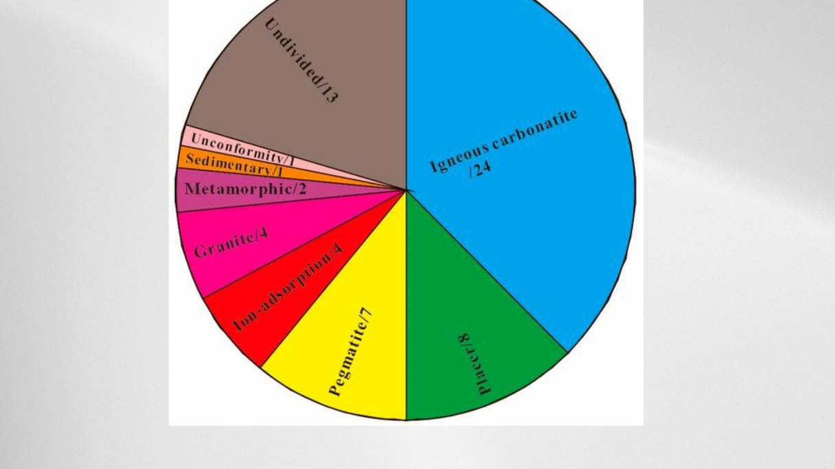 Les gisements de carbonatites dominent la typologie des gisements africains. Ils sont présents notamment en Tanzanie (Ngualla), au Malawi (Songwe Hill), en Namibie (Lofdal) et en Afrique du Sud.