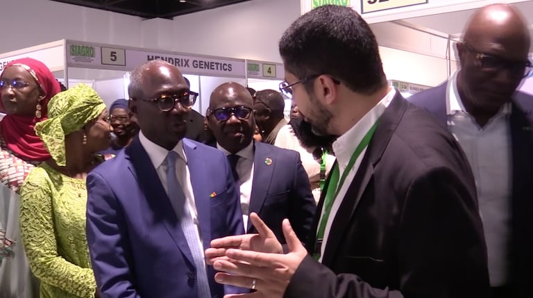 Le ministre de l'Agriculture du Sénégal Mabouba Diagne visitant un stand marocain.