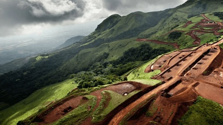 Les collines du mont Simandou après les premiers travaux d'excavation.