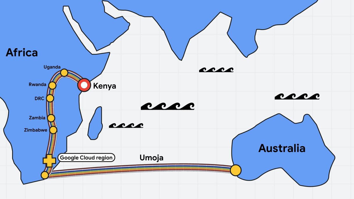 L’engagement infrastructurel de Google dépasse les investissements financiers– plus d’un milliard de dollars– pour matérialiser des corridors numériques physiques. La mention spécifique des câbles sous-marins Equiano (côte ouest) et Umoja (liaison terrestre Est-Afrique vers l’Australie) est significative. Umoja traverse nommément le Kenya, l’Ouganda, le Rwanda, la République Démocratique du Congo, la Zambie, le Zimbabwe et l’Afrique du Sud.