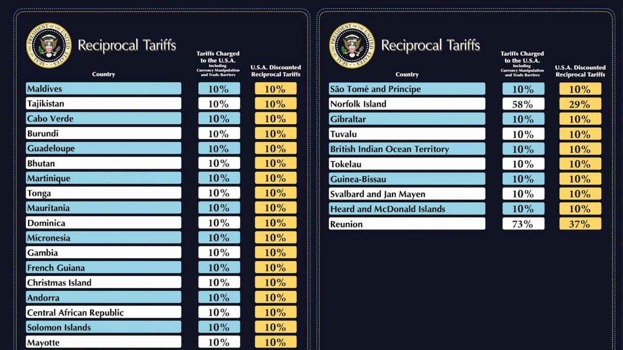 Ces pays n’ayant selon lui pas «riposté» contre les Etats-Unis, Donald Trump leur accorde «une pause de 90 jours et des droits réciproques substantiellement réduits durant cette période, de 10%, également effectifs immédiatement».