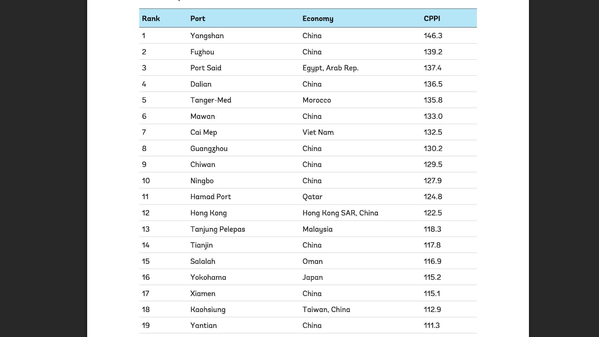 En dehors de ces deux ports nord-africains, aucun autre port du continent ne figure dans le Top 100 mondial.
