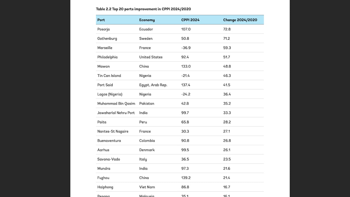 Selon le rapport, ces améliorations sont les fruits de plusieurs facteurs: engagement politique, effets des partenariats noués avec des opérateurs de terminaux mondiaux, simplification des procédures commerciales, investissements dans les infrastructures…