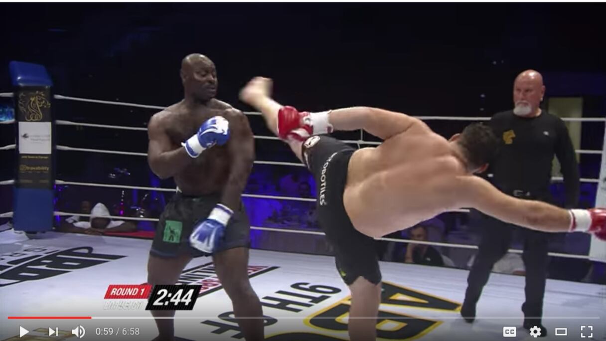 Abu Dhabi, en décembre 2016, le Maroco-néerlandais, Ismail Lazaar, affronte le Nigérian Gideon Ogenyi Ogaba. Le premier est ce que l'on appelle péjorativement une boule de graisse, alors que le second, qui mesure au moins 20 cm de plus, est un tas de muscles.