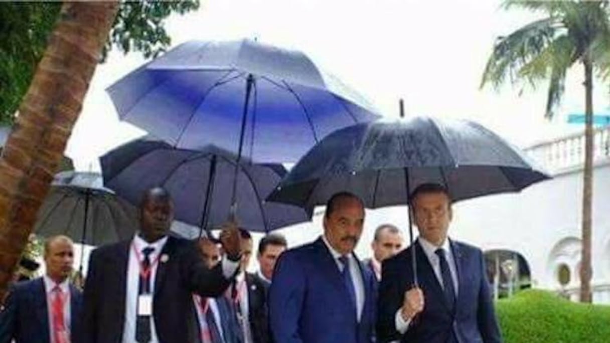 L'image est plus que parlante: les averses étant le feu des terroristes et le parapluie la protection offerte par la France à travers l'opération Barkhane. Cette photo a été prise aujourd'hui dimanche 2 juin 2017 à Bamako lors de la rencontre entre les cinq chefs d'Etat africians et leur homologue français.