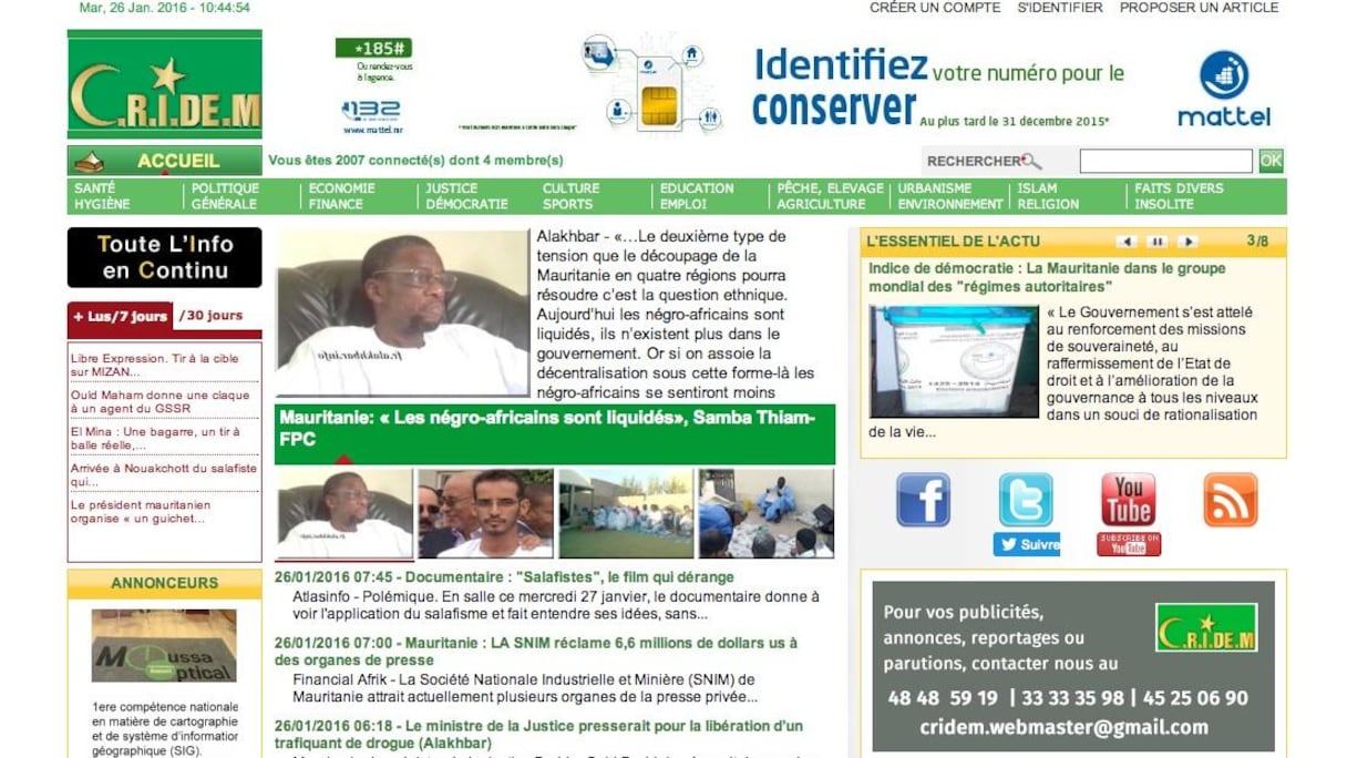 Les procédures judiciaires à l’encontre des journalistes de la presse indépendante se multiplient. Dernière en date, la convocation de Moussa Samba Sy (Le Quotidien de Nouakchott), Jedna Deida (Mauriweb), Eby Ould Mohamed Bouna (Atlas Info) et Babacar Baye N’Diaye (Cridem), le lundi 25 janvier, par le procureur de la ville de Nouadhibou, ville située à plus de 450 km de Nouakchott, après une plainte pour l’acharnement contre la SNIM et atteinte à l’image de son Administrateur directeur général, Mohamed Abdallahi ould Ouada.A titre d’exemple, Moussa Samba Sy, patron de «Mauriweb», Directeur de publication du «Quotidien de Nouakchott» et président du Rassemblement des éditeurs de Mauritanie, explique que l’entreprise minière nationale reproche à son site un article traitant de la cession de ses actifs à l’image de la compagnie d’assurances «Daman» comme une démarche de nature «à ébranler» la confiance des partenaires et des investisseurs.Une citation directe a été adressée aux responsables des 4 sites. Et en guise de réparation du «préjudice» subi, la SNIM réclame aux organes de presse collectivement et solidairement une véritable fortune : 2 milliards d’ouguiyas, soit environ 6,6 millions de dollars.Pour sa part, auditionné en qualité de Directeur de publication de «Cridem», Babacar Baye NDiaye précise que «sur ordre du tribunal, nous avons été entendus ce matin par le Commissariat de police judiciaire de Nouadhibou. La SNIM nous reproche d’avoir mis en ligne une série d’articles édités par différents organes de presse et qui auraient porté un coup à l’image de l’entreprise et de l’Administrateur directeur général. Ce qui aurait également eu une incidence négative au niveau des rapports avec certains partenaires dans le domaine de l’investissement».En tout cas, cette affaire intervient dans un contexte difficile pour la SNIM durement affectée par la chute des cours du fer qui ont atteint un niveau plancher réduisant drastiquement les revenus de la première entreprise mauritanienne.