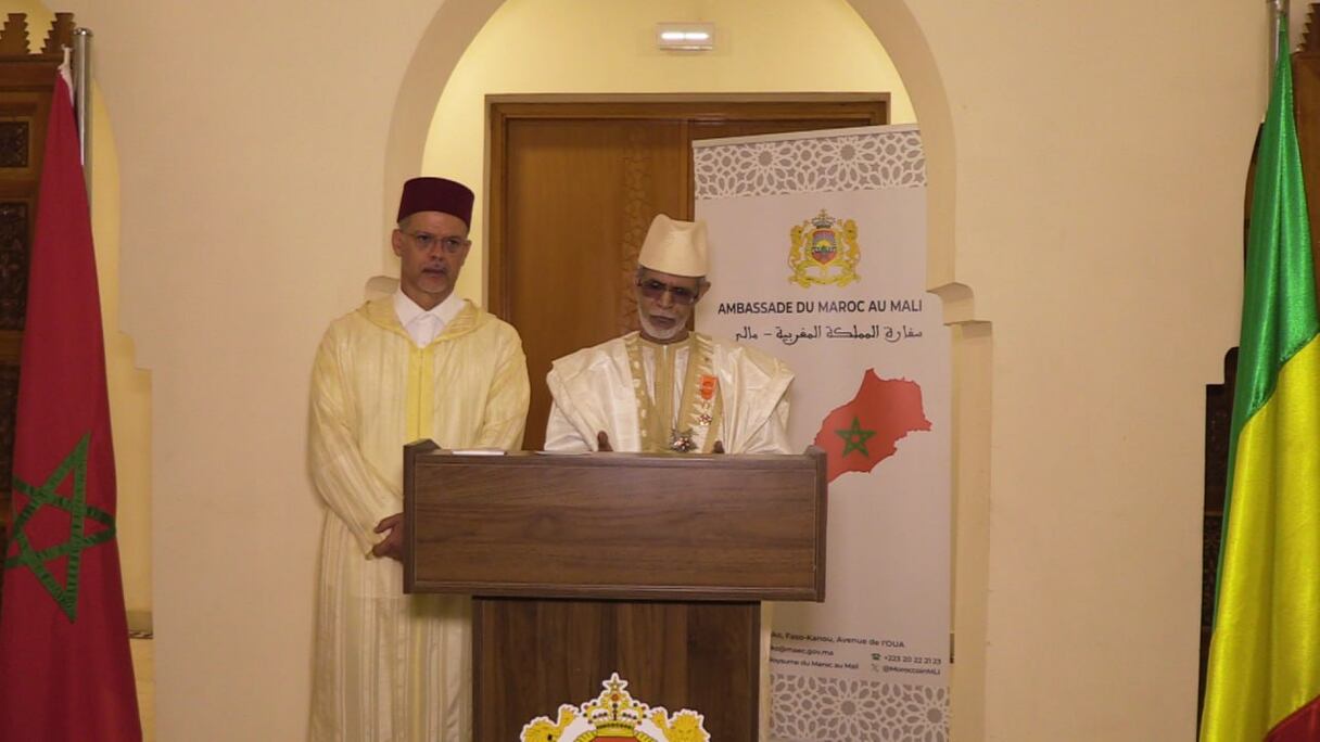 «Toute notre gratitude à Sa Majesté le Roi Mohamed VI que Dieu l’assiste pour cet honneur à l’ambassadeur Mahamoud Ben Labat, diplomate émérite, nous félicitons le récipiendaire pour cette distinction bien mérité et nous remercions pour le Maroc pour tout le soutien qu’il accorde au Mali dans le cadre de la coopération bilatérale exemplaire». C’est en ces mots que Youssouf Dramane Koné, représentant du ministre des Affaires étrangères et de la coopération internationale a félicité l’ambassadeur malien Mahamoud Ben Labat qui a servi au Maroc de 2019 à 2024.