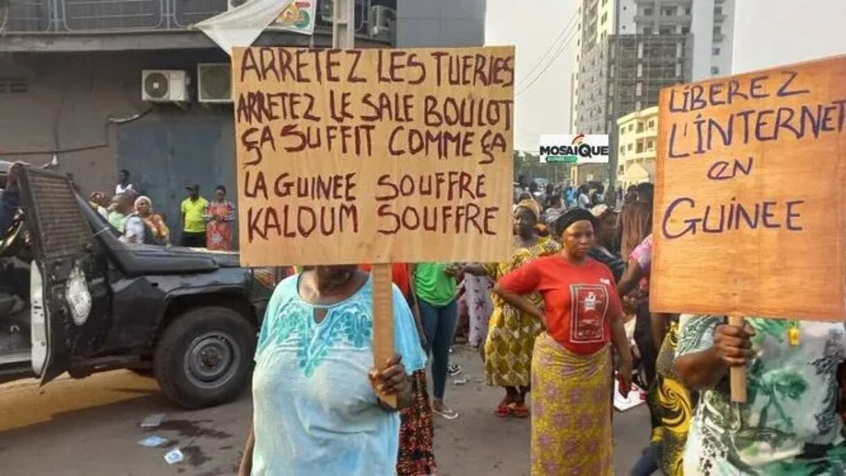 Sur ces revendications se sont greffées des protestations contre l’augmentation des prix des produits de première nécessité, contre la répression de l’opposition et contre les restrictions imposées à internet. Les médias sociaux ont publié des photos de femmes brandissant des écriteaux proclamant «Arrêtez les tueries. Arrêtez le sale boulot, ça suffit comme ça. La Guinée souffre».