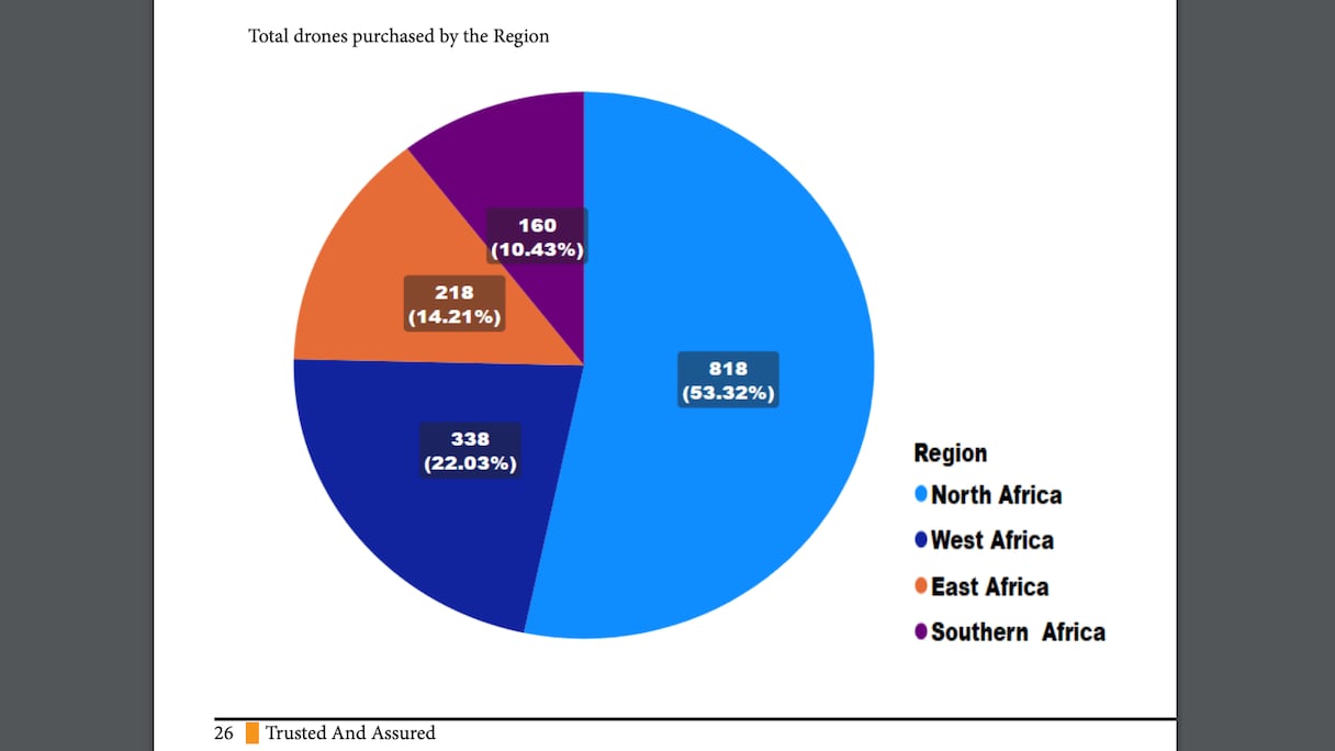 Les cinq premiers pays détiennent 60% (914 unités) des drones militaires du continent, ce qui dénote réellement une forte concentration de ces engins sur une poignée de pays.