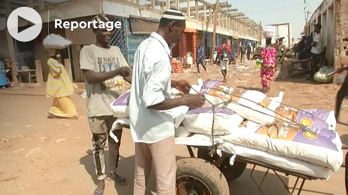 Sac d'oignons ou de pomme de terre, carton de lait, de produits cosmétiques ou ménagers... Quand c'est lourd ou encombrant, rien ne se déplace sans faire appel aux pousse-pousse dans les marchés du Sénégal connus pour ses allées étroites. Et même en dehors des marchés, ils ne refusent jamais de faire quelques dizaines de mètres de plus pour amener les marchandises jusque dans les voitures garées plus loin, voire dans des domiciles ou boutiques.