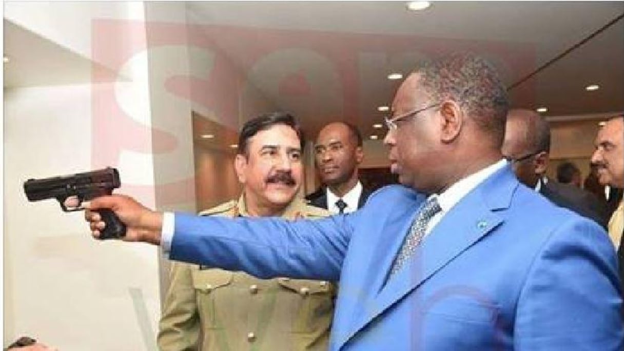 La photo prise est au Pakistan, où Sall a bifurqué après avoir assisté au sommet du G20 à Ganzhou en Chine le 4 septembre. Elle le montre avec une arme de poing, s’essayant visiblement au tir ou du moins essayant ladite arme automatique. Tout le monde y va de son petit commentaire.