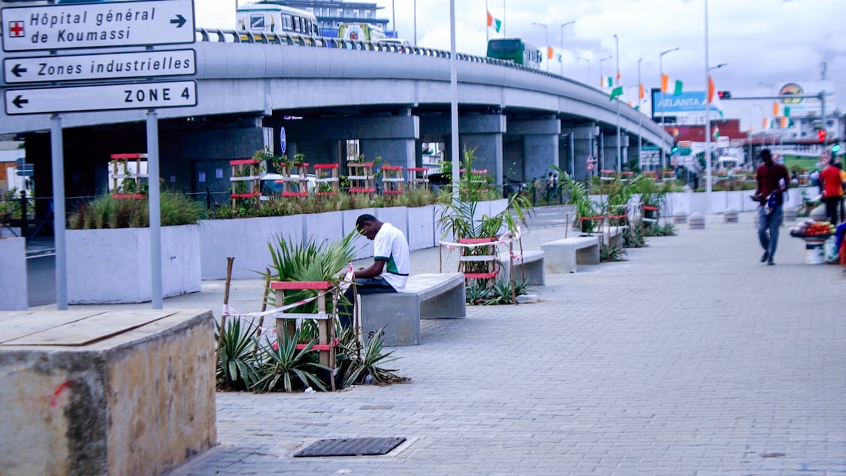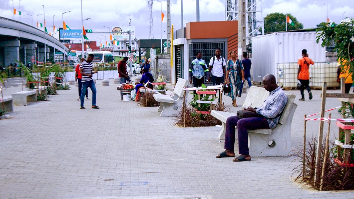 Le grand carrefour de Koumassi fait peau neuve: trottoirs pavés et propres, éclairage public, espaces verts, aires de repos.... E. Djidja/Le360 Afrique