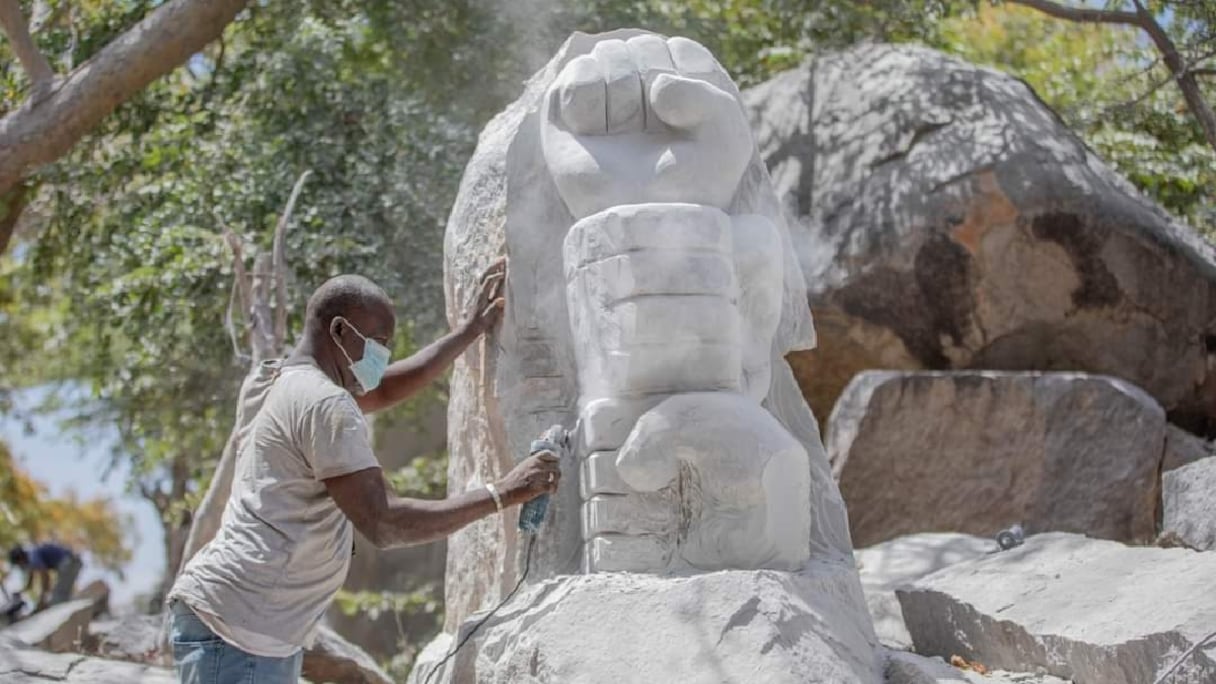 Pape Alioune Gueye, sculpteur représentant le Sénégal à cette édition, peaufine son œuvre sous un soleil de plomb. Bien qu’il ait déjà entrepris des créations de plus grande envergure, celle-ci, il la souhaite plus énigmatique, la décrivant comme une œuvre de sagesse. «J’appelle cette œuvre la sagesse parce que le personnage, qui ne peut ni voir ni entendre, est contraint de fermer la bouche et de se taire», explique-t-il.