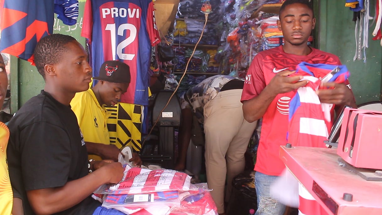 Plusieurs activités participent à la retouche des vêtements importés, parmi lesquelles le flocage des maillots et autres gadgets sportifs. La teinture des vêtements y passe également à la satisfaction des centaines de clients qui font la visite de ce marché populaire chaque jour.