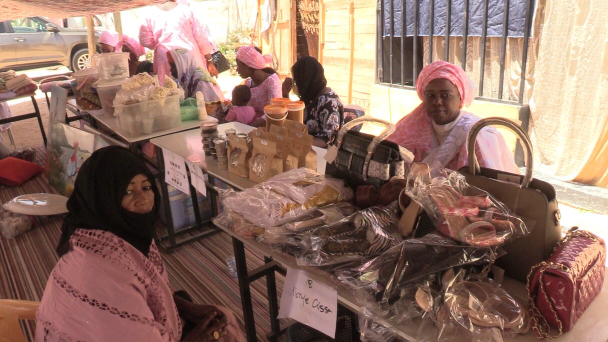 Aïssata Dia, transformatrice, présente les nombreux produits du cru: pain de singe, patates, niébés... qu’elle transforme en jus, en pommade...