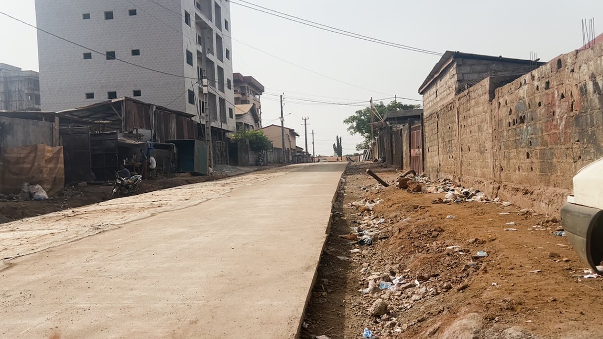 À Sonfonia, le contraste est saisissant. Dans certaines zones, les ruelles non goudronnées dominent encore le paysage: sol sablonneux, paquets de poussière soulevés au passage des motos, flaques d’eau stagnante en saison pluvieuse. Mais quelques mètres plus loin, l’image change radicalement.