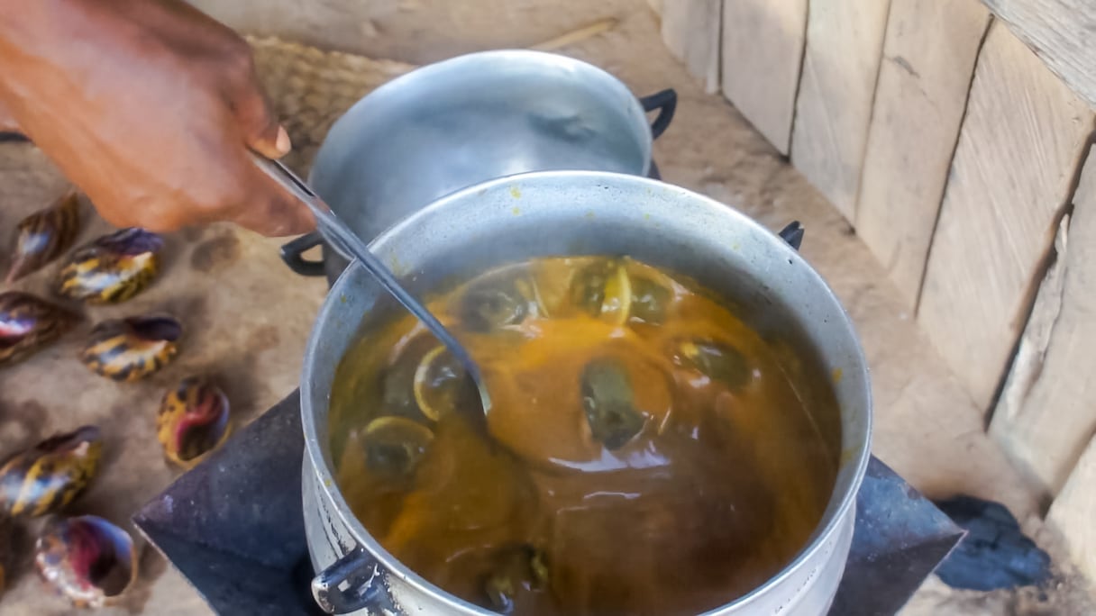 La sauce à l’escargot est incontournable dans les repas de la fête. Considéré comme un mets de choix, le gastéropode symbolise à la fois abondance et hospitalité. Préparée avec soin, accompagnée de foutou, cette sauce rassemble les familles. En Côte d’Ivoire, l’escargot est d’ailleurs une source de protéines très prisée, ce qui explique son importance dans les grandes occasions.