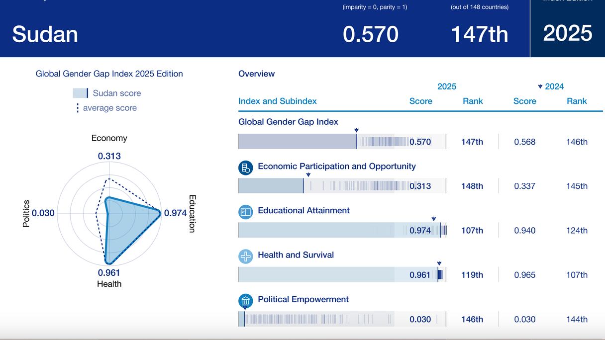 Malheureusement le gros lot des pays africains est situé au bas du classement. Ainsi, cinq pays africains figurent parmi les sept au monde où les inégalités homme-femme sont parmi les plus importantes. Il s’agit du Soudan qui occupe le 147e rang mondial, avec un score de 0,570, c’est-à-dire que le pays a comblé l’écart global entre les hommes et les femmes de seulement 57,00%. Le pays est devancé par le Tchad (146e avec un score de 0,571), la Guinée (144e avec un score de 0,595), la RDC (143e avec un score de 0,601) et le Niger (142e avec un score de 0,613).