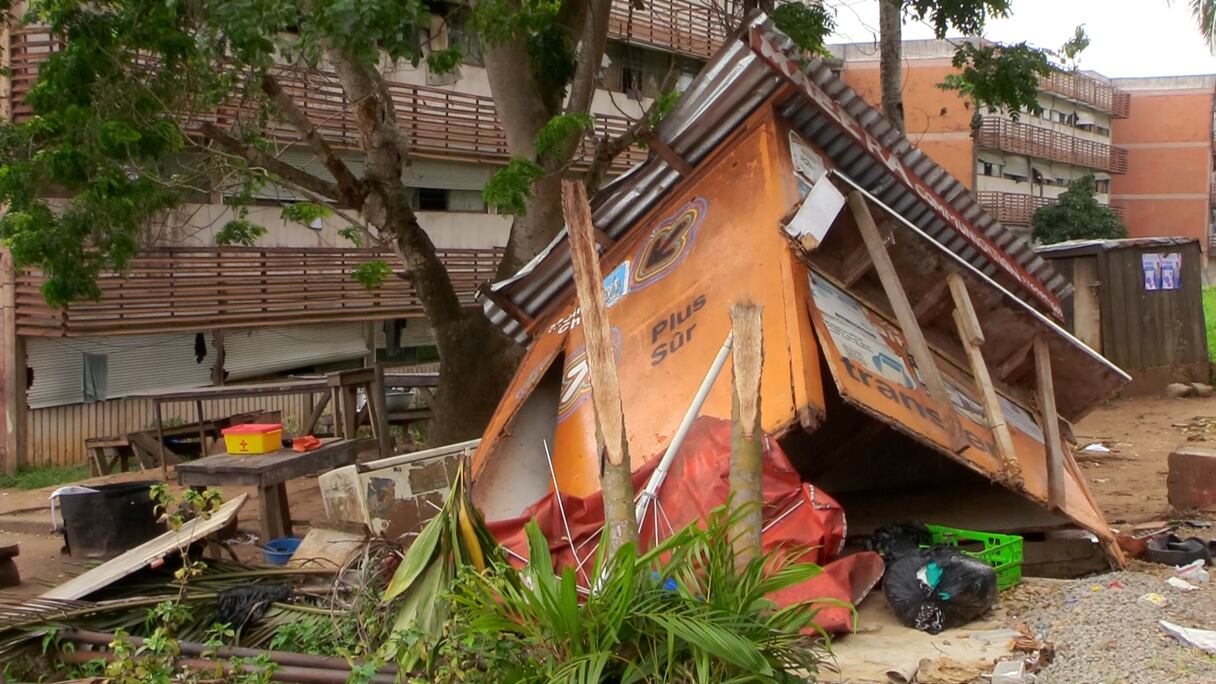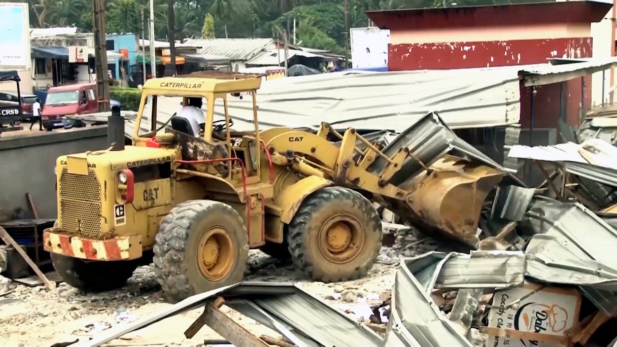 Un bulldozer démolit les baraques et cantines installées par les étudiants à l'intérieur de la cité universitaire de Cocody.. le360 Afrique/djidja