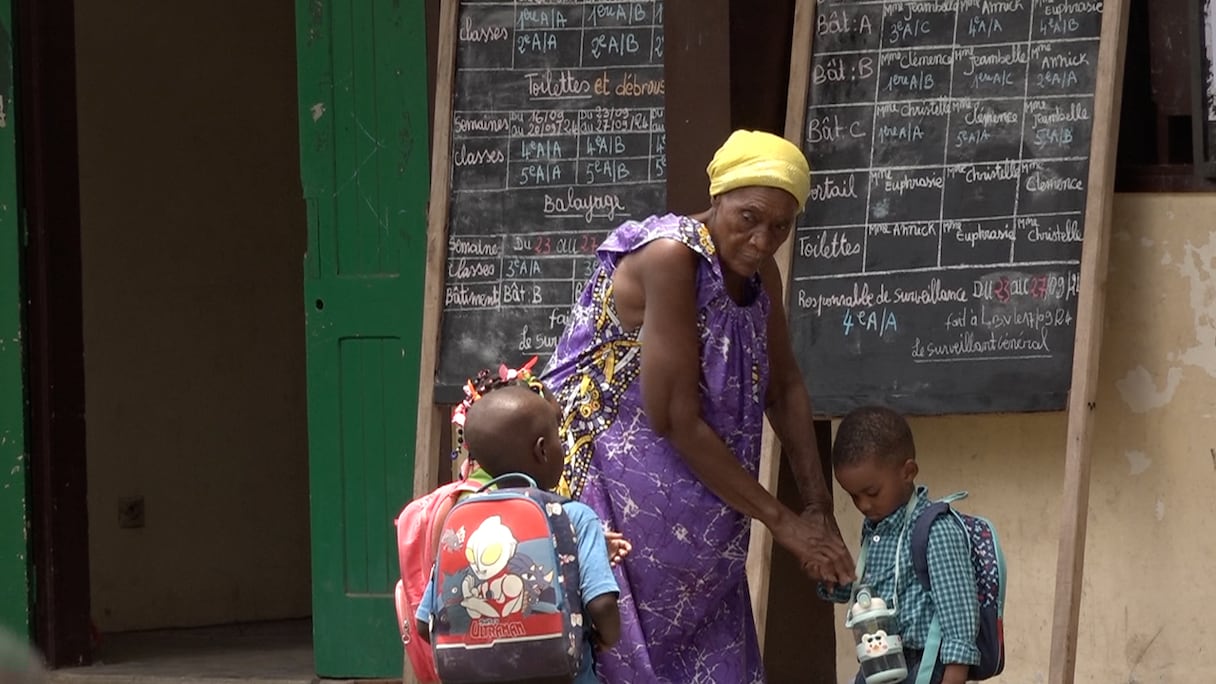 Une grand mère amenant ses petits-enfants à l'école.. le360 Afrique/Ismael