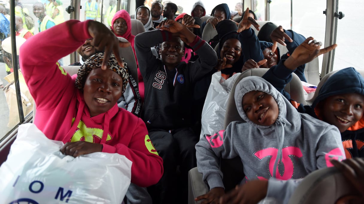 Elles ont rempli des formulaires et fait tamponner des laisser-passer par un agent de la Police des frontières, présent au centre, avant de monter dans le bus vers l’aéroport, en entonnant l’hymne national nigérian en compagnie de représentants de leur ambassade.