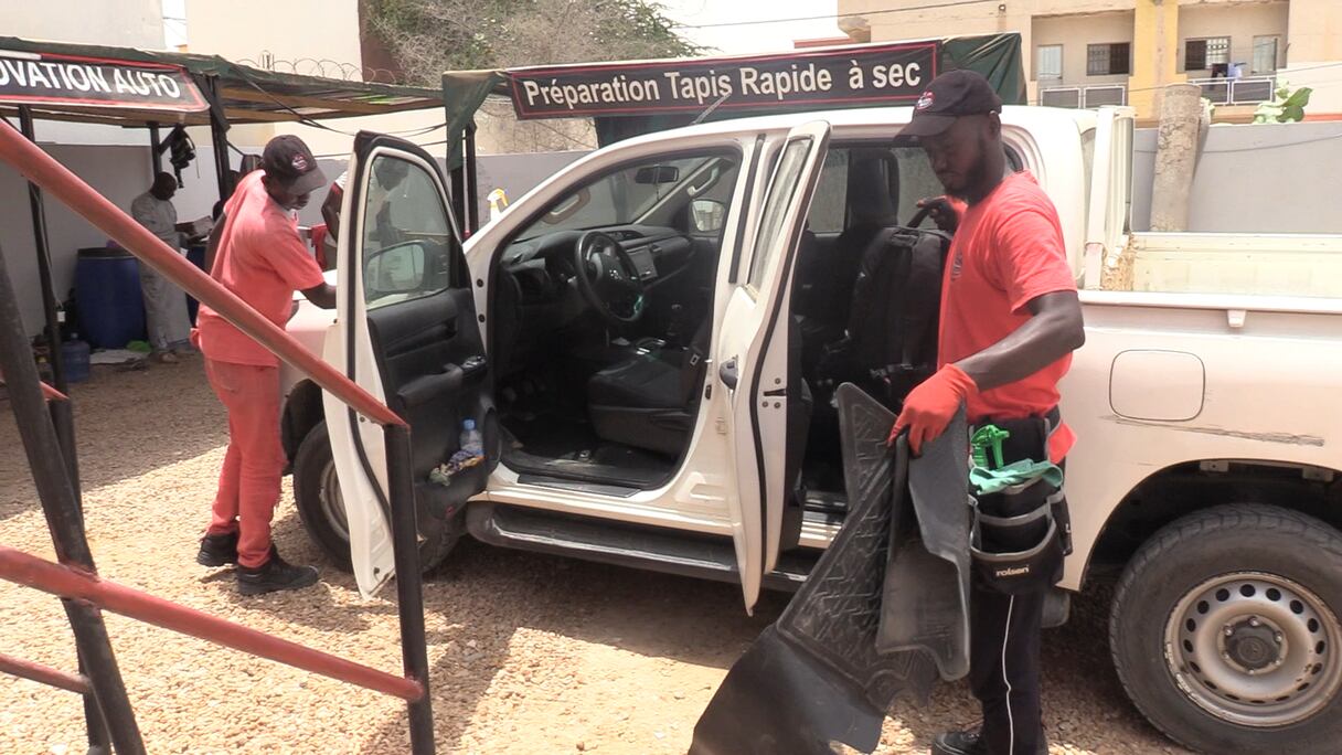 Seydi Bakari Camara, gérant, donne des indications sur les différents services offerts aux clients, les tarifs correspondants et les méthodes de nettoyage utilisées, pour redonner un éclat originel aux véhicules, tapis et divers autres objets.