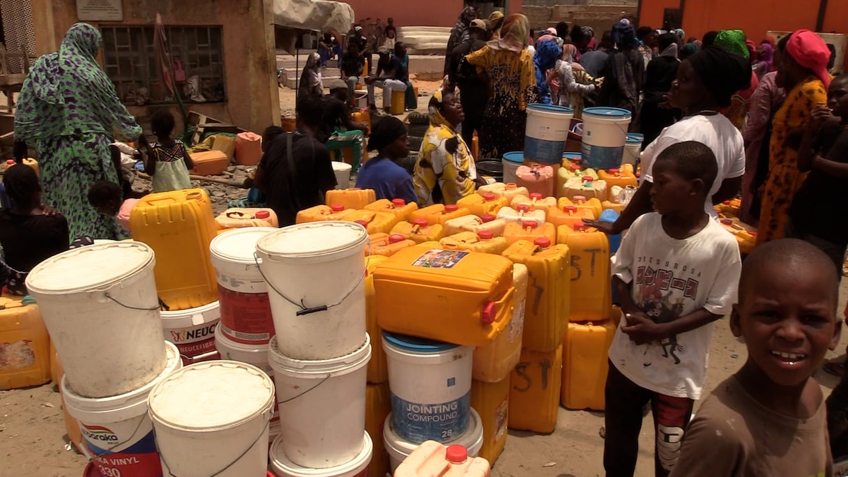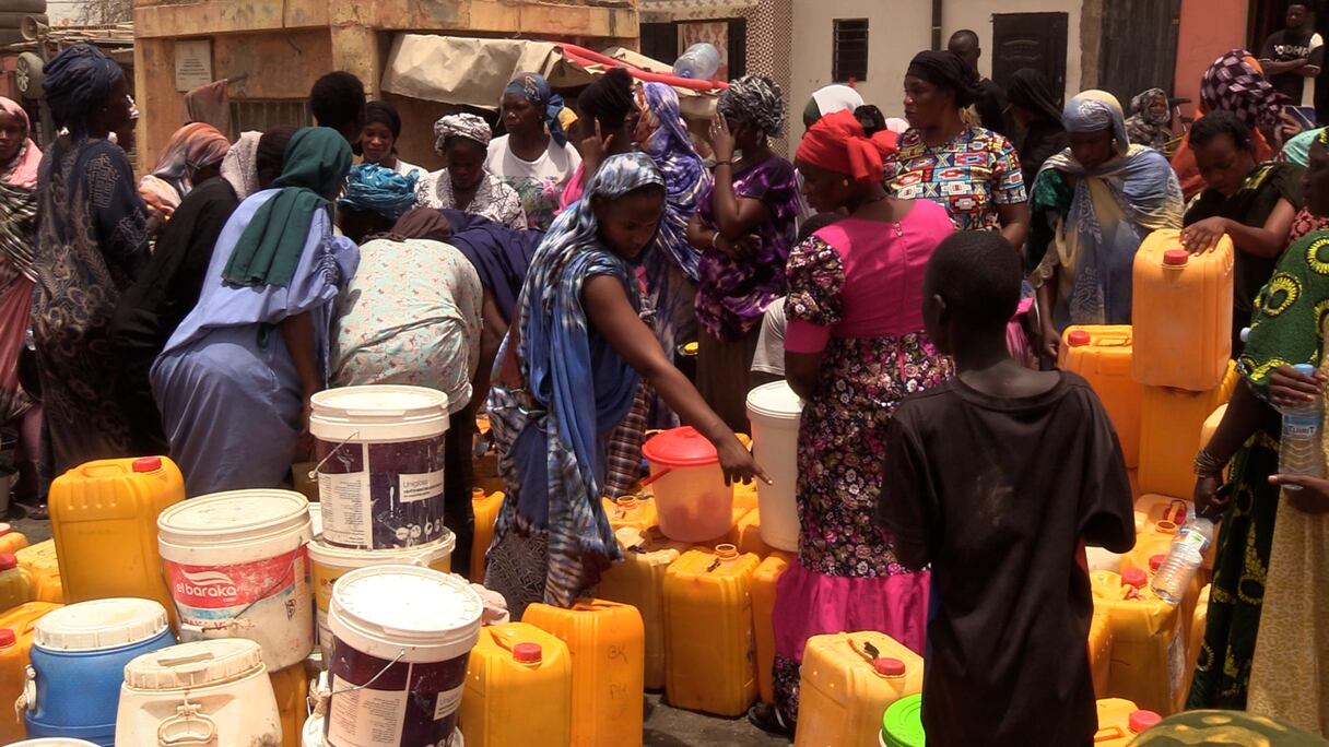 Des citoyens font la queue pour s'approvisionner en eau au niveau d'une borne fontaine.. le360 Afrique/seck