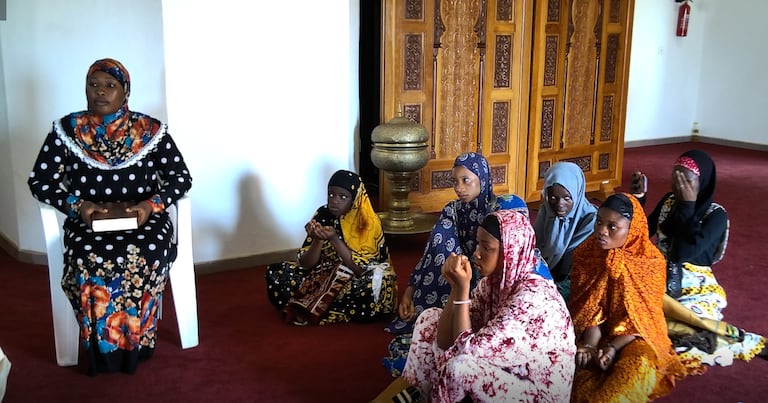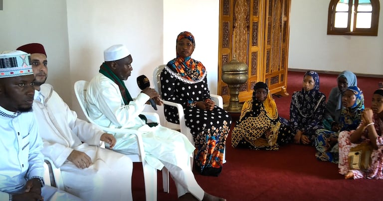 (le360 Afrique/Souaré)Une jeune guinéenne, accompagnée de ses amies, venue se convertir à l'islam à la mosquée Mohammed VI de Conakry.