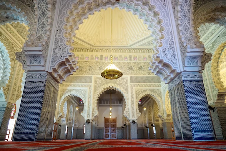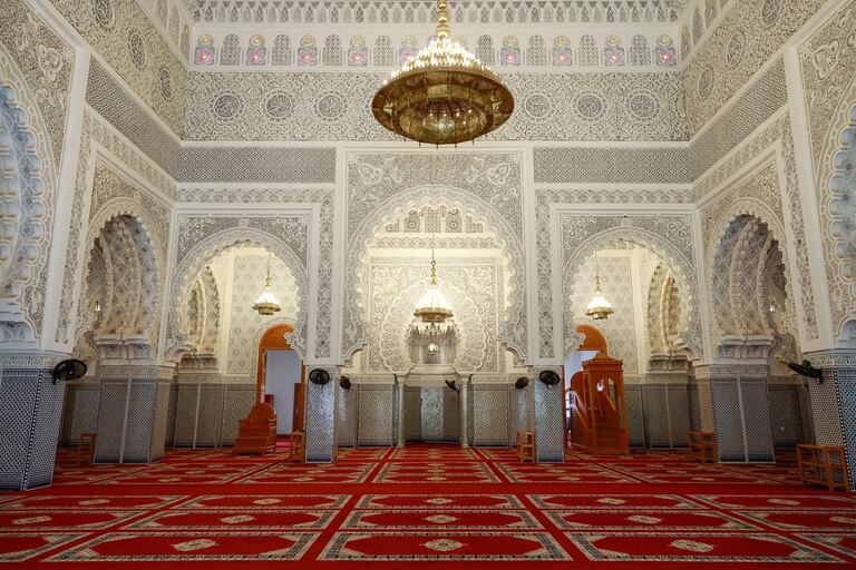 L'intérieur raffiné de la mosquée Mohammed VI de Conakry, Guinée.