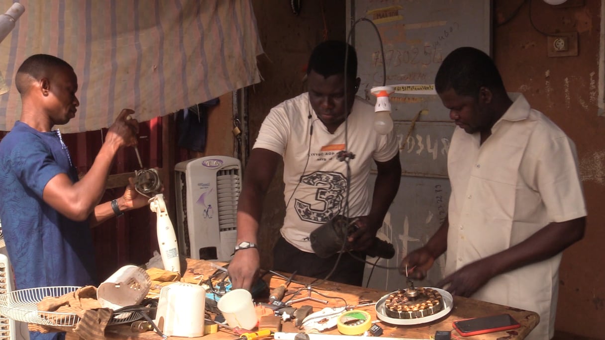 Pendant que ses apprentis s’affairent autour d’humidificateurs et ventilateurs, Mahamadou Bello doit affronter une dizaines d’autres appareils qui attendent d’être réparés. Dans sont atelier en banlieue de Niamey, l’atmosphère est extraordinaire.