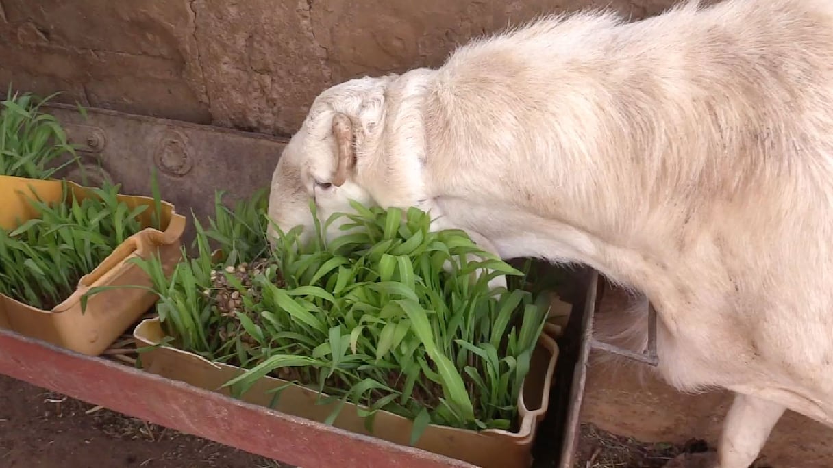 «Ici, je produis du fourrage vert à base de semence de maïs en raison de sa qualité nutritive. Le procédé consiste à utiliser de bonne graines de maïs que nous mettons dans de l’eau pour favoriser la germination, suite à quoi nous les mettons à l’ombre pour activer la croissance des plantes», explique l’ingénieur.