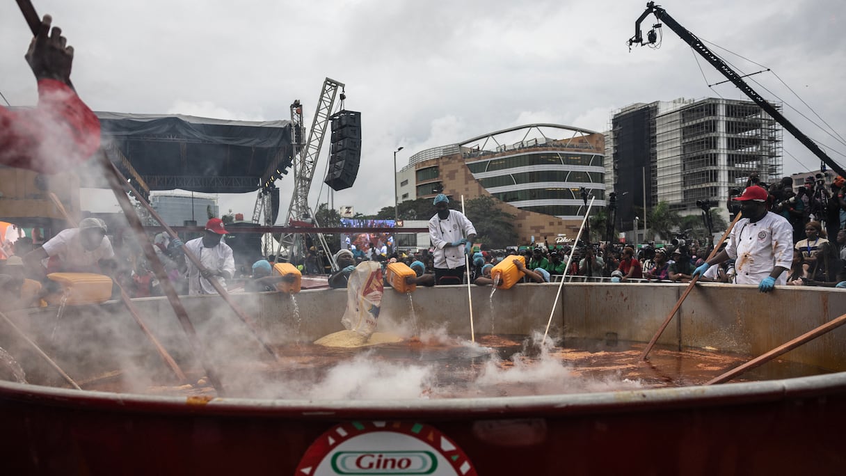 Le Guinness des records a annoncé la victoire de la cheffe nigériane lundi sur son compte X, précisant que cette version XXL de ce plat emblématique du Nigeria composé de riz, de tomate et d’oignons pesait au final 8,7 tonnes.