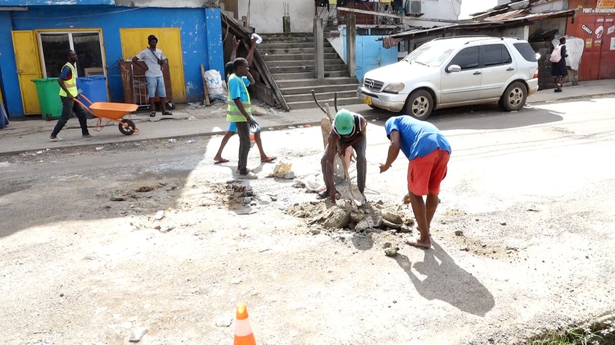 De l’autre côté de la ville, à la cité Damas, Nik, Emmanuel et leurs camarades remettent à niveau des tranchées et colmatent les excavations à l’aide du concassé ou du ciment.