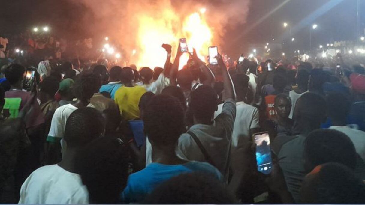 Des vidéos amplement relayées par la presse et les réseaux sociaux montrent un attroupement de dizaines de personnes au moins autour d’un grand feu, à la lumière de portables filmant la scène.