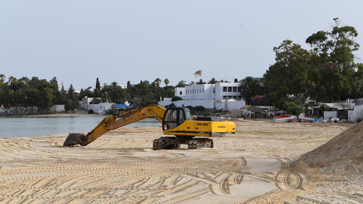 Tout le mois de juin, 15.000 m3 de sable - 750 camions - provenant de carrières de la région semi-désertique de Kairouan, à plus de 100 km de là, ont été déversés sur ce site, emblématique d’un modèle touristique fondé sur les stations balnéaires en bordure de Méditerranée.