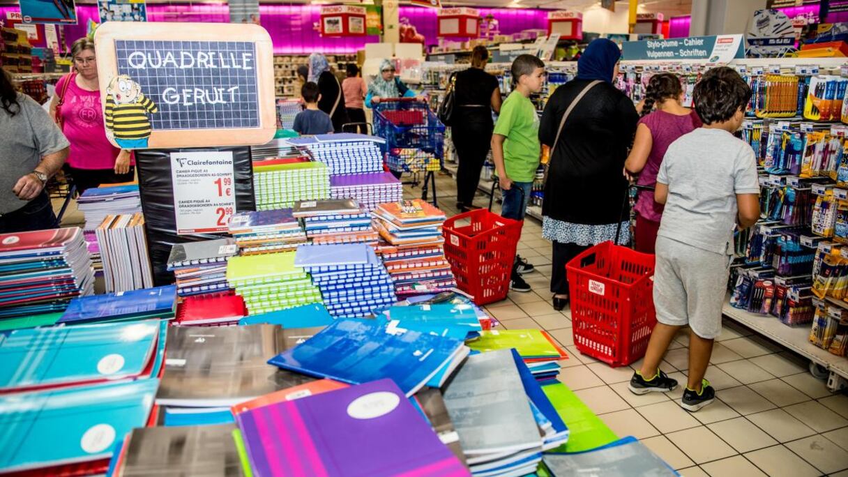 Dans l’une des rares librairies disposant encore en stock de ce type de cahier, Jamila Sassi, mère de deux enfants en primaire, attend son tour dans une longue file d’attente.