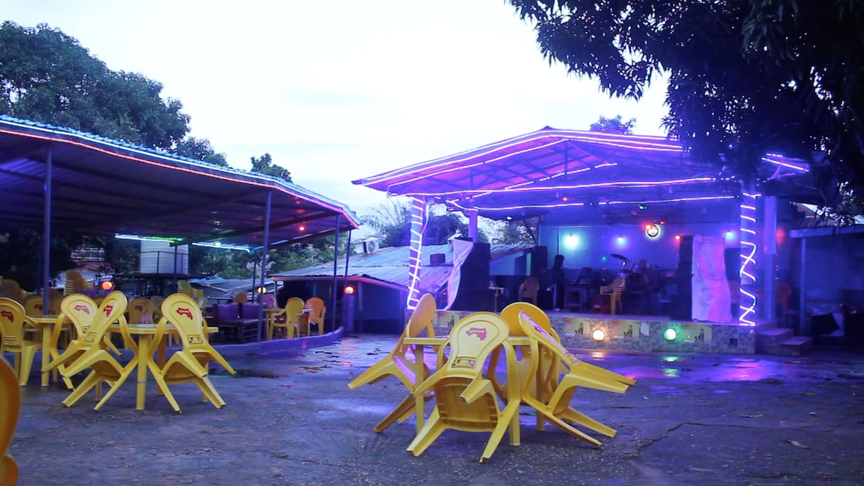 Dans cette cour habituellement animée par les concerts et spectacles, seule la scène reste éclairée, non pas pour un show, mais juste pour préserver les équipements. Aucun artiste n’est à l’affiche, aucune activité en vue. Ce soir, les seules présences notables sont celles de Lega Bah et Oury Diallo, deux figures bien connues de la scène musicale guinéenne. Ils sont là, non pour se produire, mais pour se détendre, se rappeler les souvenirs d’un passé plus animé.