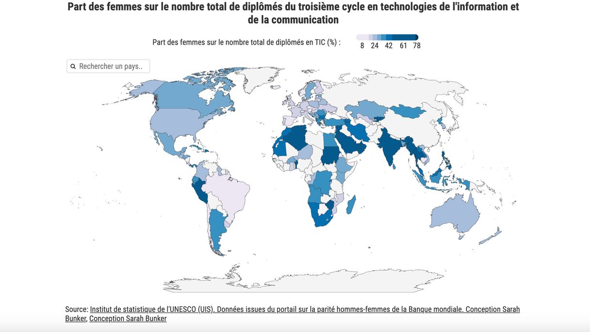 Certains pays semblent en passe de réussir ce pari. Ainsi, la proportion des femmes diplômées du 3e cycle en TIC est largement appréciable. En se basant sur les données fournies par le portail sur la parité hommes-femmes de la Banque mondiale, dans une dizaine de pays, ce taux dépasse les 40%. Et dans une poignée d’entre eux, ce ratio dépasse même les 50%.