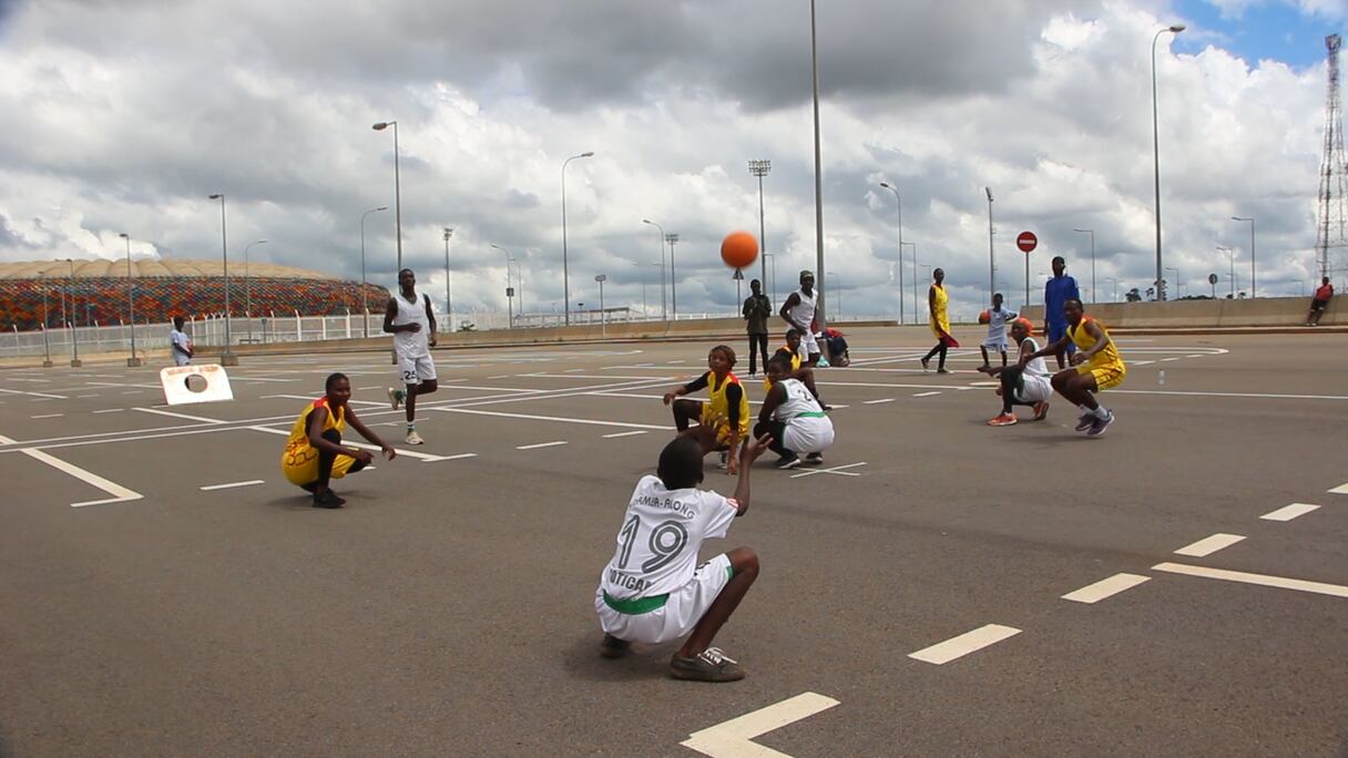 Le Ndamba-along est un jeu inspiré du handball et du basketball et signifie en langue ewondo «ballon du trou». C’est une discipline collective et mixte qui oppose deux équipes formées chacune de cinq joueurs et joueuses sur l’aire de jeu. Cinq autres sont sur le banc de touche.