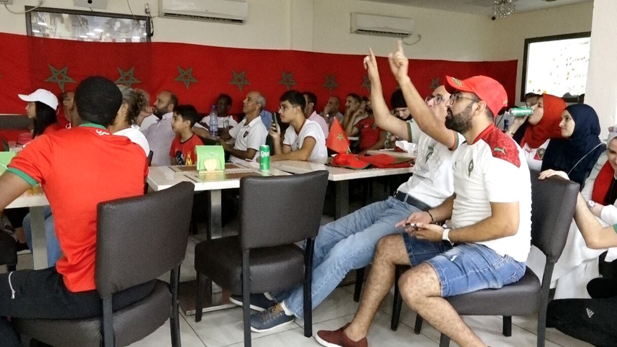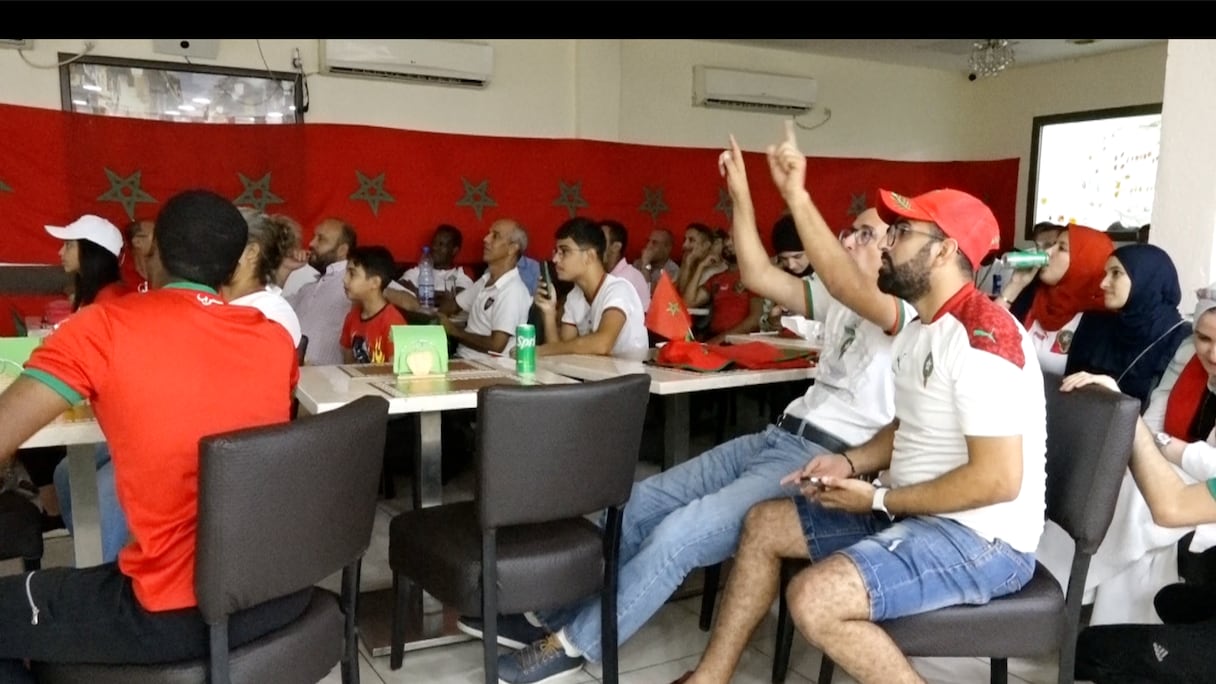 Plusieurs heures avant le début du match, ce grand restaurant marocain du quartier Nombakélé à Libreville avait aménagé son espace pour accueillir les férus du ballon rond, notamment les supporters des Lions de l’Atlas. Dans la salle, l’impatience et le stress se lisent sur les visages du public qui va attendre la demi-heure du jeu pour voir l’ouverture du score sur la plus grosse occasion du match.