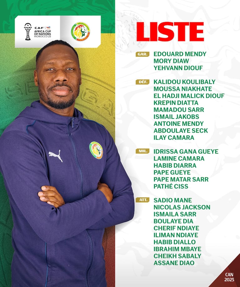 Certains vivront même leur première CAN: le latéral gauche de West Ham El Hadj Malick Diouf, le défenseur central de Strasbourg Mamadou Sarr, les milieux de terrain Lamine Camara (AS Monaco) et Habib Diarra (Sunderland), ainsi que les ailiers Assane Diao (Côme) et Ibrahim Mbaye (Paris Saint-Germain).