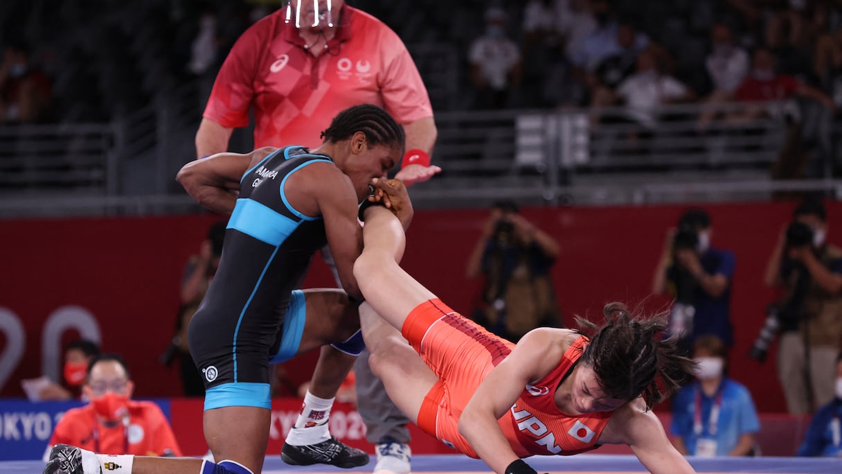 Fatoumata Yarie Camara, lutteuse guinéenne aux JO de Tokyo.. AFP