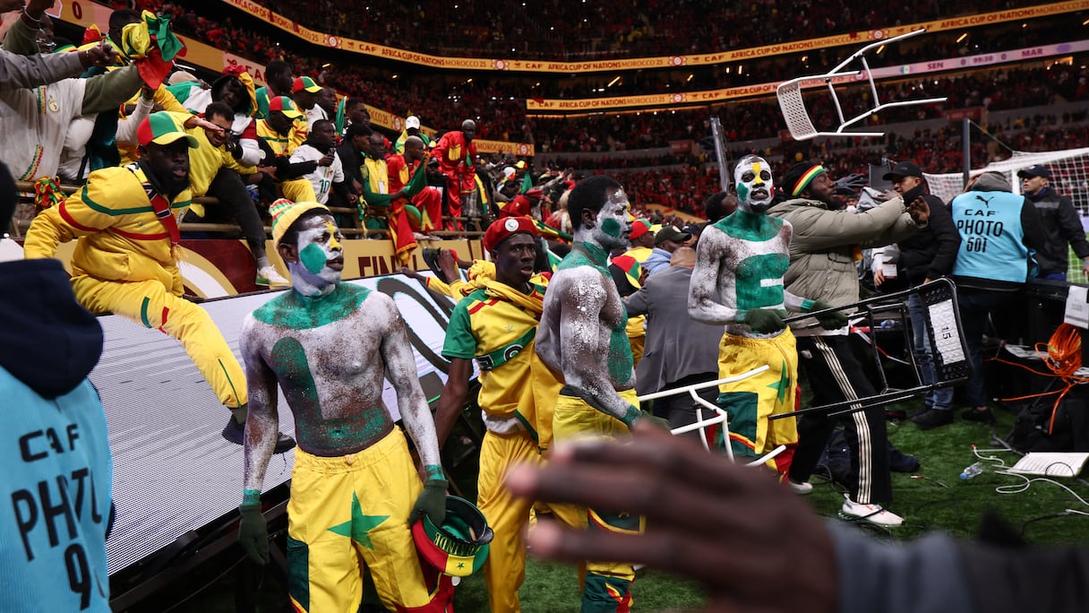 Lors des actes de hooliganisme perpétrés par des supporters sénégalais au stade Moulay Abdellah à Rabat en marge de la finale de la CAN 2025.. AFP